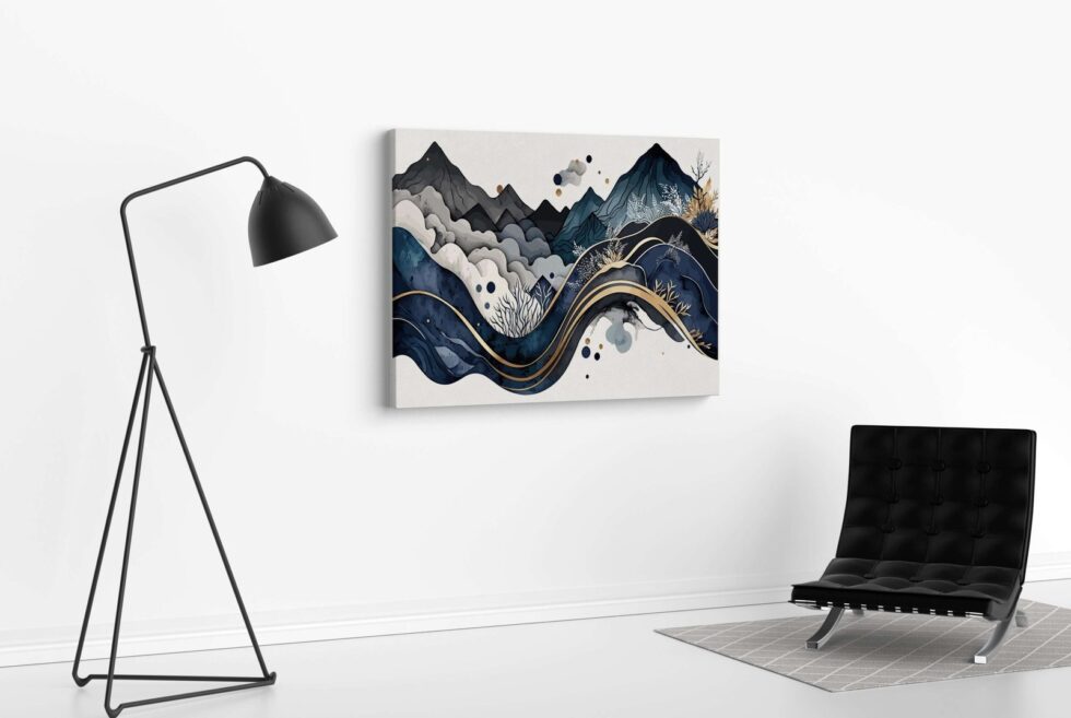 Golden round framed painting that’s perfect for creating a luxury feel in your living room.
