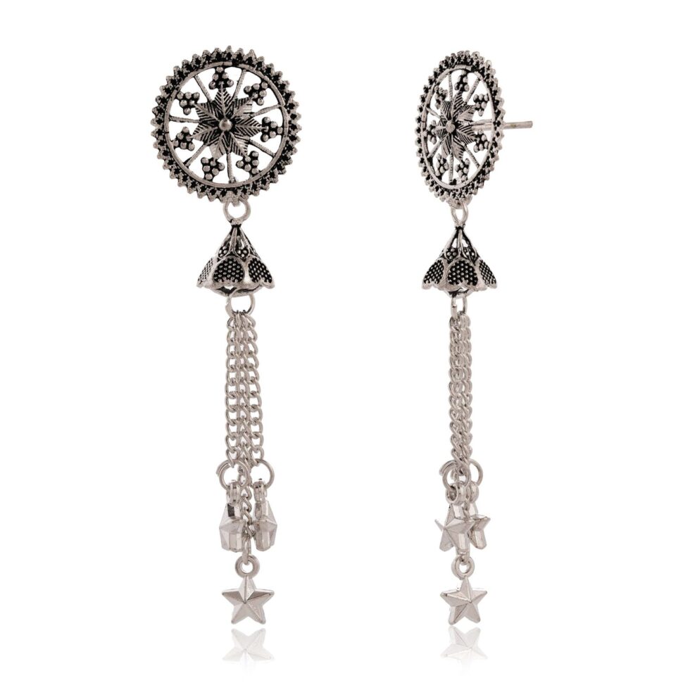 Women Traditional Silver AZ838-OXidised Jhumka Set | German Silver Chand Baliyan & Jhumkas Earrings for Women | Birthday & Anniversary Gift -AZ838-OX-ER49